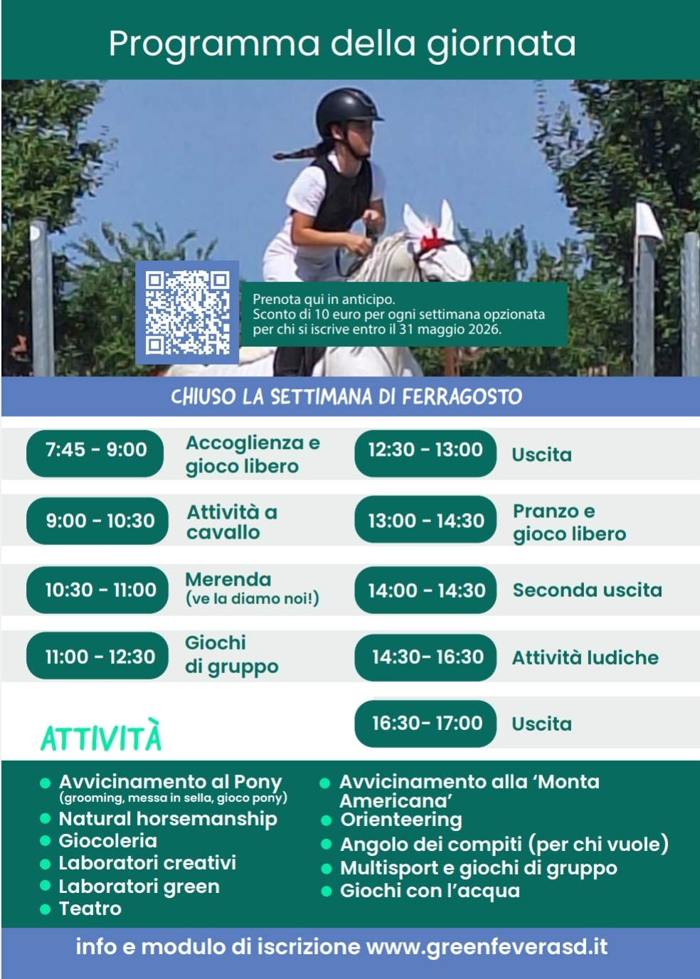 SCONTI DI 10 EURO A SETTIMANA PER CHI SI ISCRIVE ENTRO IL 31 MAGGIO!